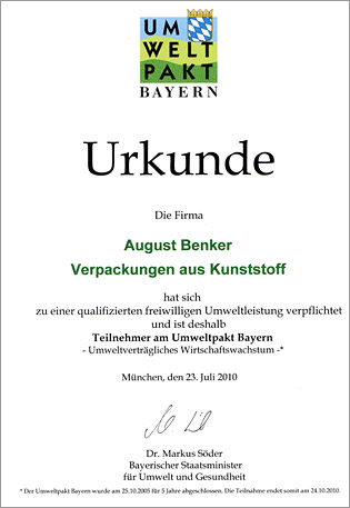 Am 4. Oktober 2010 überreichte Herr Landrat Rudolf Schwemmbauer die Urkunde